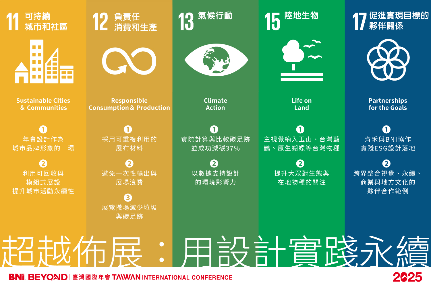 Beginning in 2025, BNI Taiwan will continue advancing the use of circular exhibition materials, cross-region carbon-reduction standards, and measurable environmental impact indicators—establishing itself as a key model for sustainable BNI events worldwide.