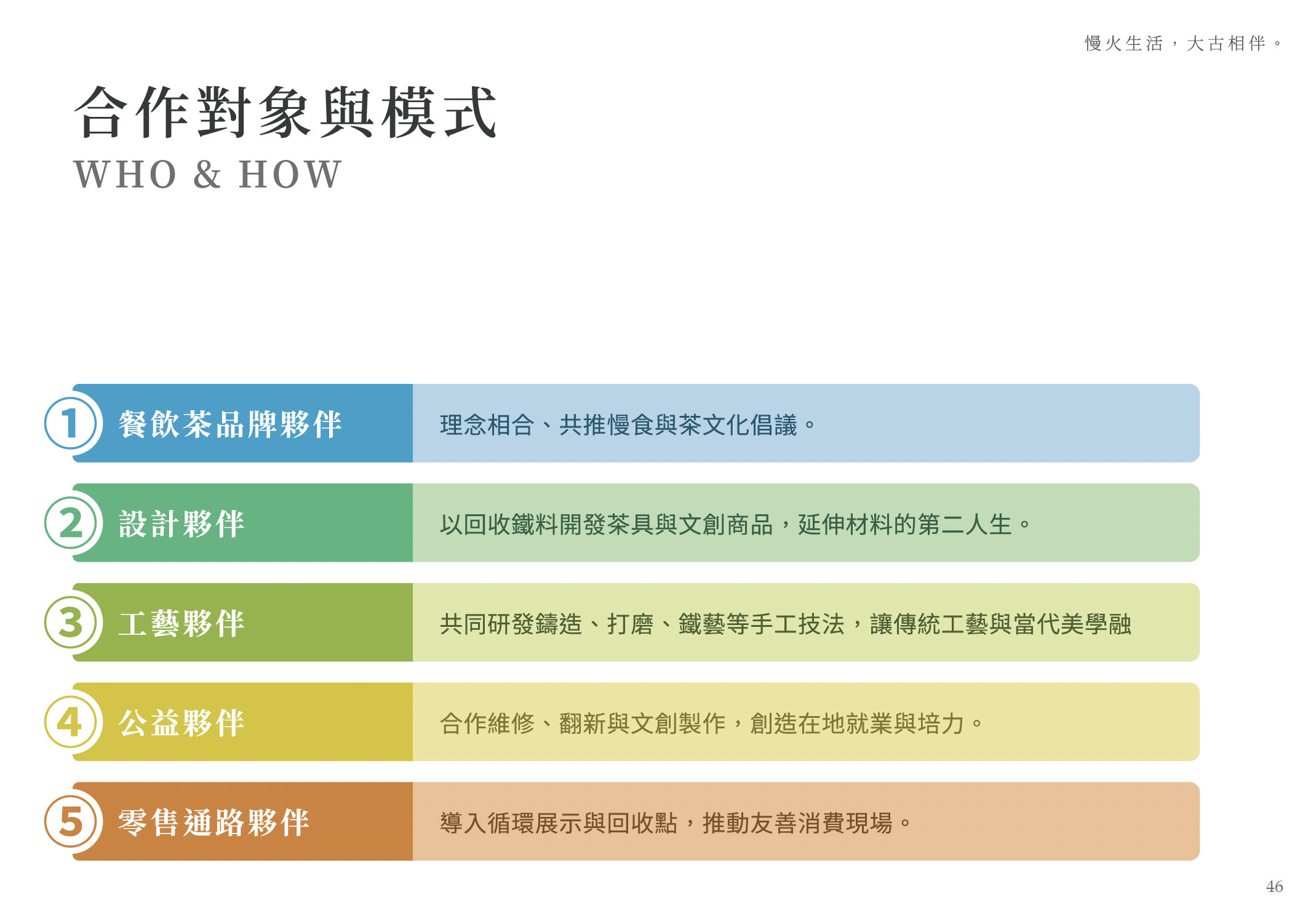 與顧問端合作,將碳排、生命週期(LCA)、維修延壽、回收再製等數據,轉化為可追溯、可解釋的內容模組,而非僅止於表格附錄。 - 品牌語言與設計介入