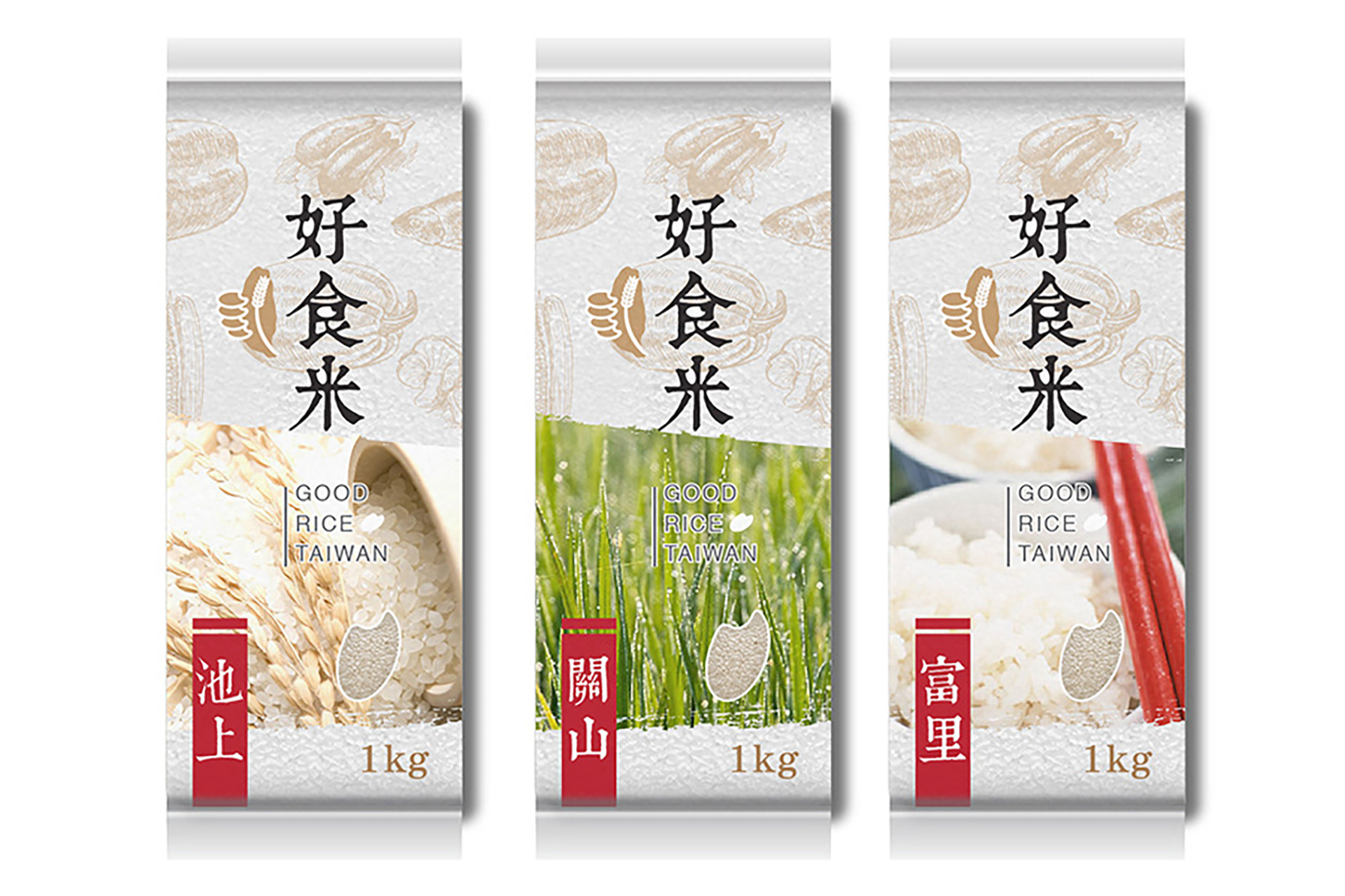 其產地包括:台東池上、關山、富里。好食米的品牌訴求的是專賣台灣好吃的米,因此在設計LOGO的時候,我們將台灣的形狀和米的形狀以及手部舉起大拇指的形狀和稻米做一個意象的整合。將好食米的品牌米以細緻娟秀的中國書法字體來呈現,除了代表著中國人的飲食文化,因為現代人怕胖,普遍在澱粉類的攝取上有顧忌,因此也有將米食與纖細感連結的意味,在包裝設計的運用上更能促進販賣。